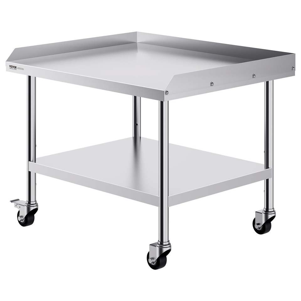 DB โต๊ะสแตนเลสสตีลสำหรับเตรียมอาหาร30x36x30นิ้วแบบ4ล้อล้อเลื่อน3ด้านสำหรับเตรียมอาหาร