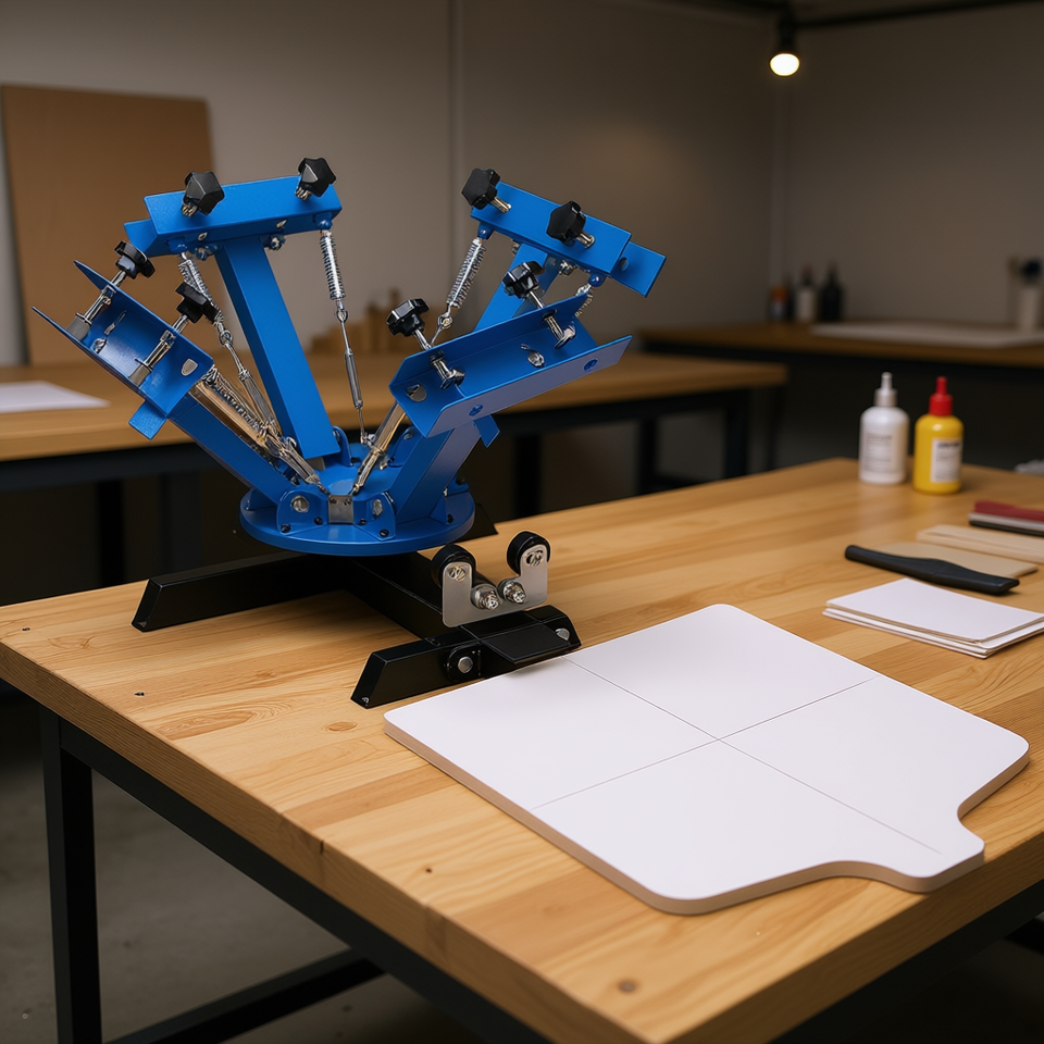 เครื่องพิมพ์สกรีน DB Wholesale 4 สี 1 สถานี ขนาด 21.2x17.7 นิ้ว แบบสองชั้น สำหรับสิ่งทอ