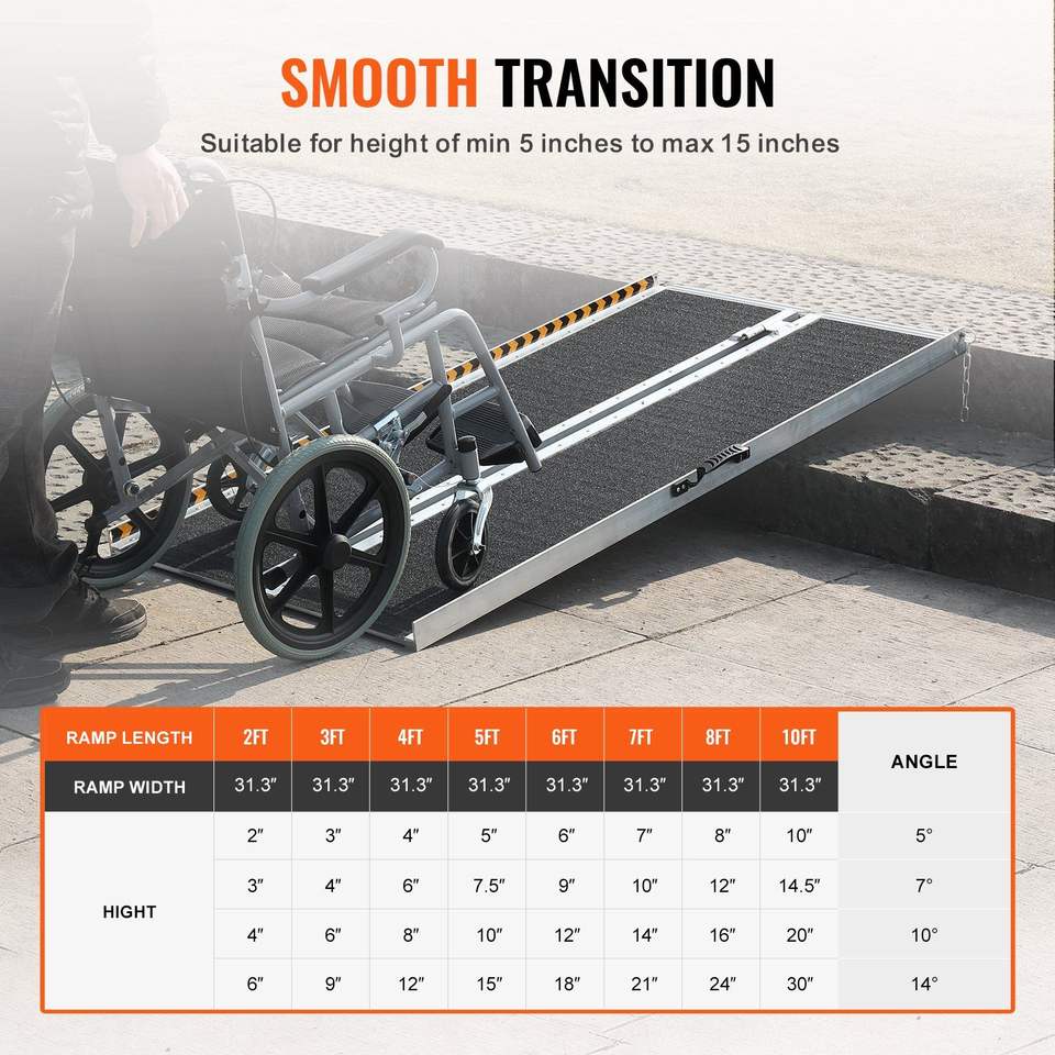 สกู๊ตเตอร์เคลื่อนที่แบบพับได้สำหรับรถเข็นคนพิการขนาด5ฟุตพับได้ทำจากอลูมิเนียมกันลื่นความจุ800ปอนด์