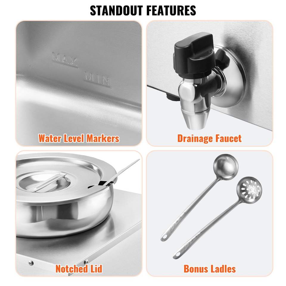 เครื่องอุ่นซุปไฟฟ้า1200W สำหรับ Bain Marie ใช้ในเชิงพาณิชย์พร้อมหม้อสแตนเลสสาม7.4QT 86 ~ 185กำหนดอุณหภูมิได้