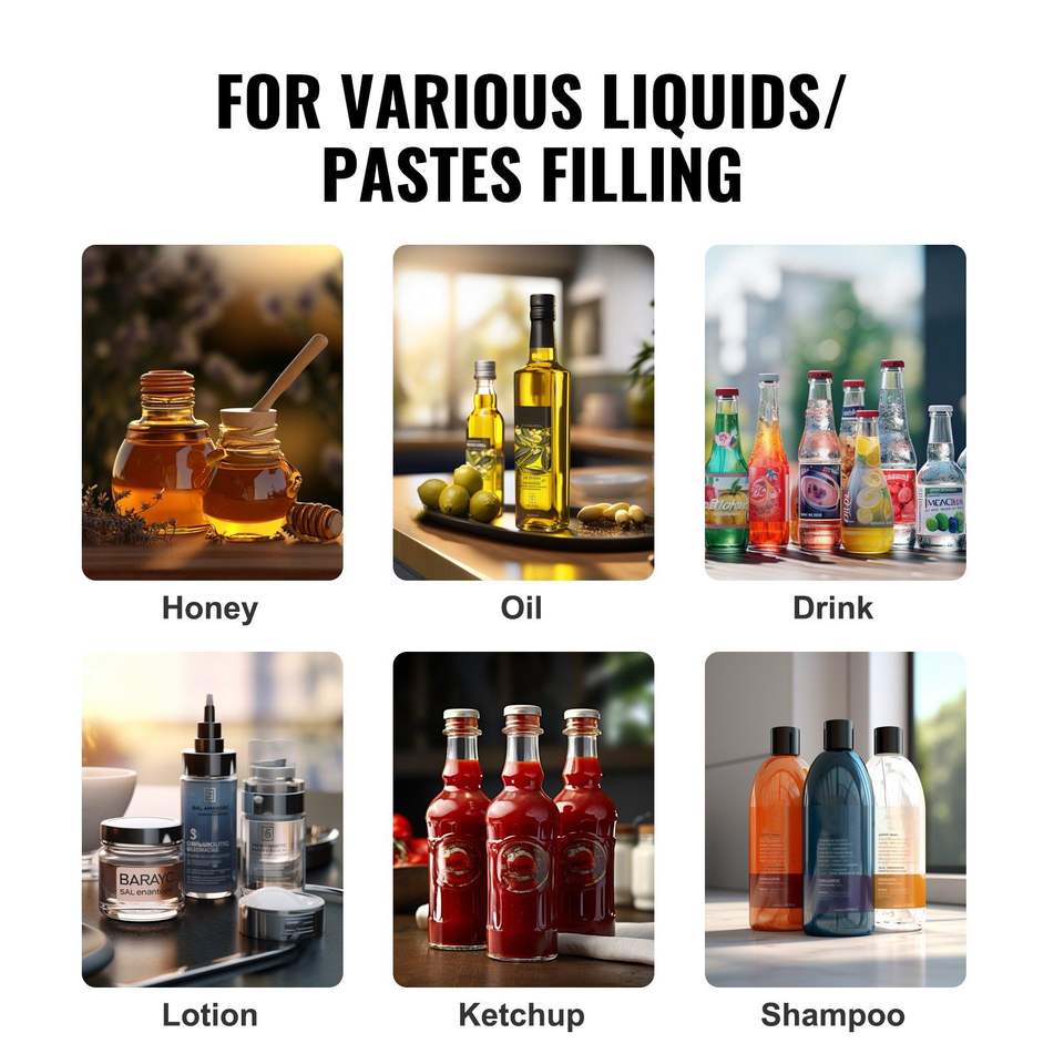 เครื่องบรรจุของเหลวแบบวางเอง dB เครื่องบรรจุขวดบรรจุแบบปรับได้5-50มล. ทำจากสเตนเลสสตีลมีความจุ10L ถัง