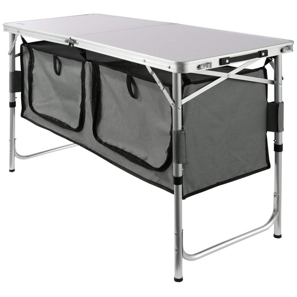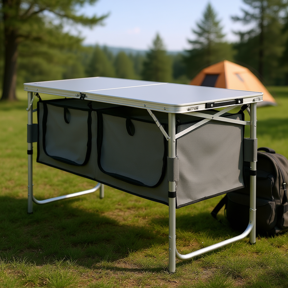 โต๊ะครัวพับได้สำหรับตั้งแคมป์ ติดตั้งง่าย โครงอะลูมิเนียม ท็อป MDF ปรับความสูงได้ 3 ระดับ ใช้งานกลางแจ้ง รูปทรงสี่เหลี่ยมผืนผ้า ดีไซน์มินิมอล