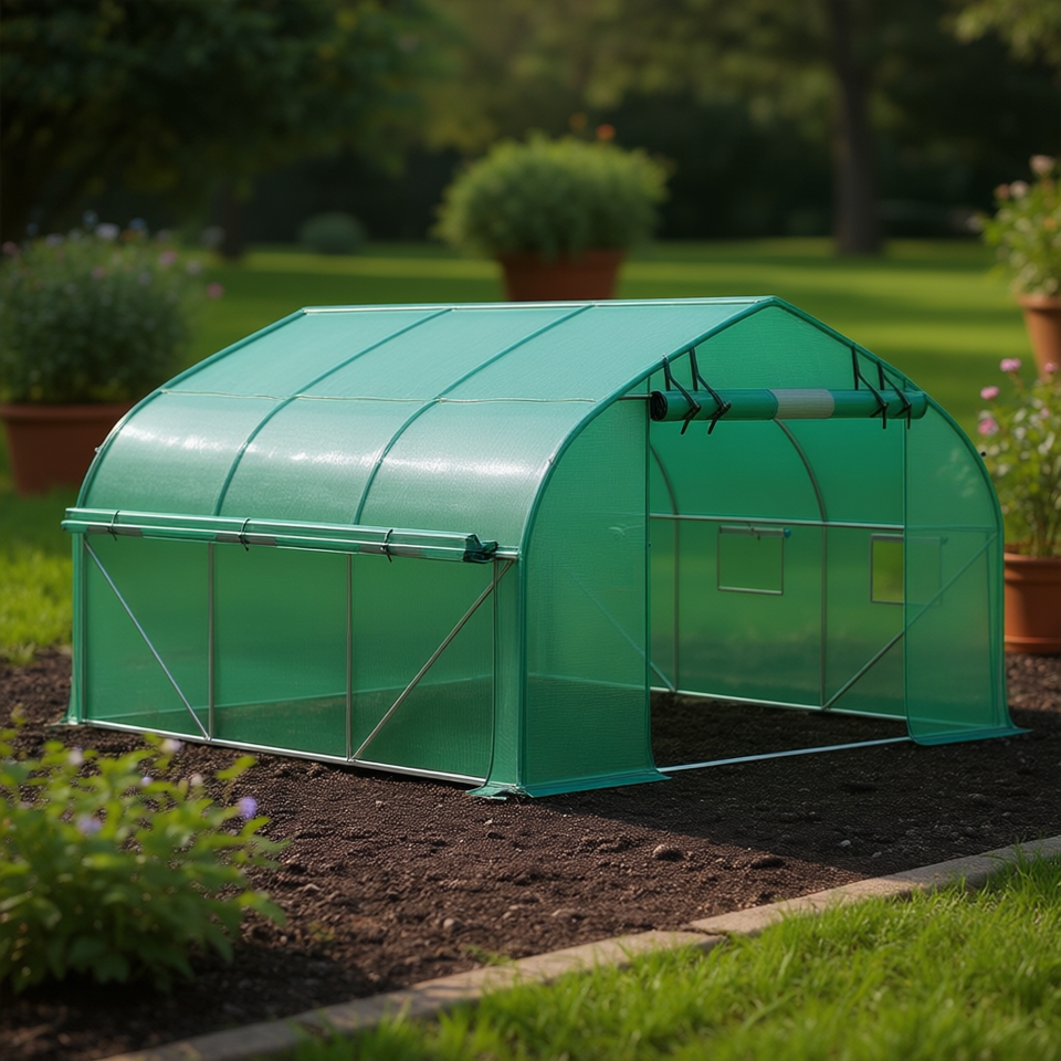 โรงเรือนปลูกพืชแบบเดินเข้าได้ โครงเหล็กโพลีคาร์บอเนต เป็นมิตรกับสิ่งแวดล้อม สำหรับใช้ในสวน