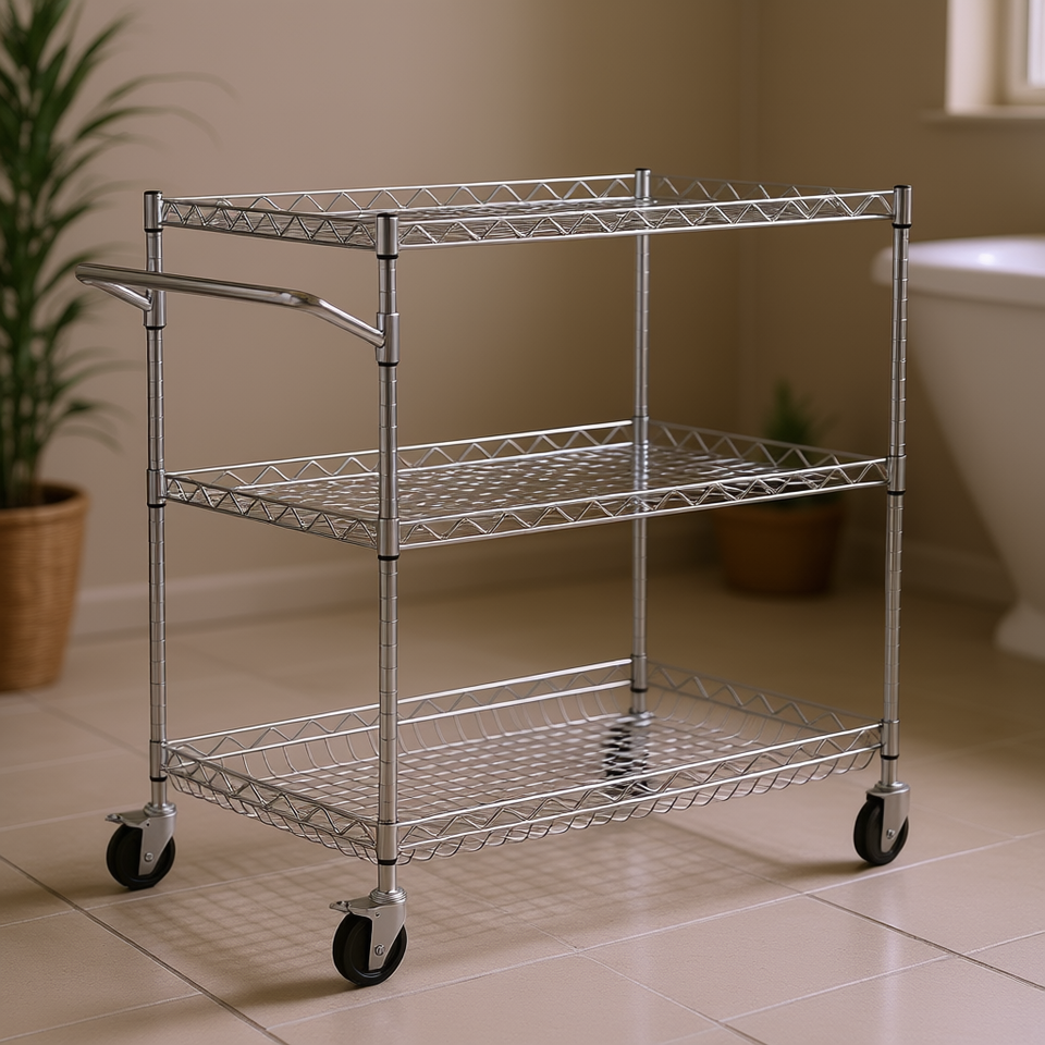 รถเข็นอเนกประสงค์ 3 ชั้น DB Wholesale รับน้ำหนักได้ 661 ปอนด์ ผลิตจากสแตนเลส ขนาด 30x18x32.4 นิ้ว สำหรับเก็บของในห้องน้ำ