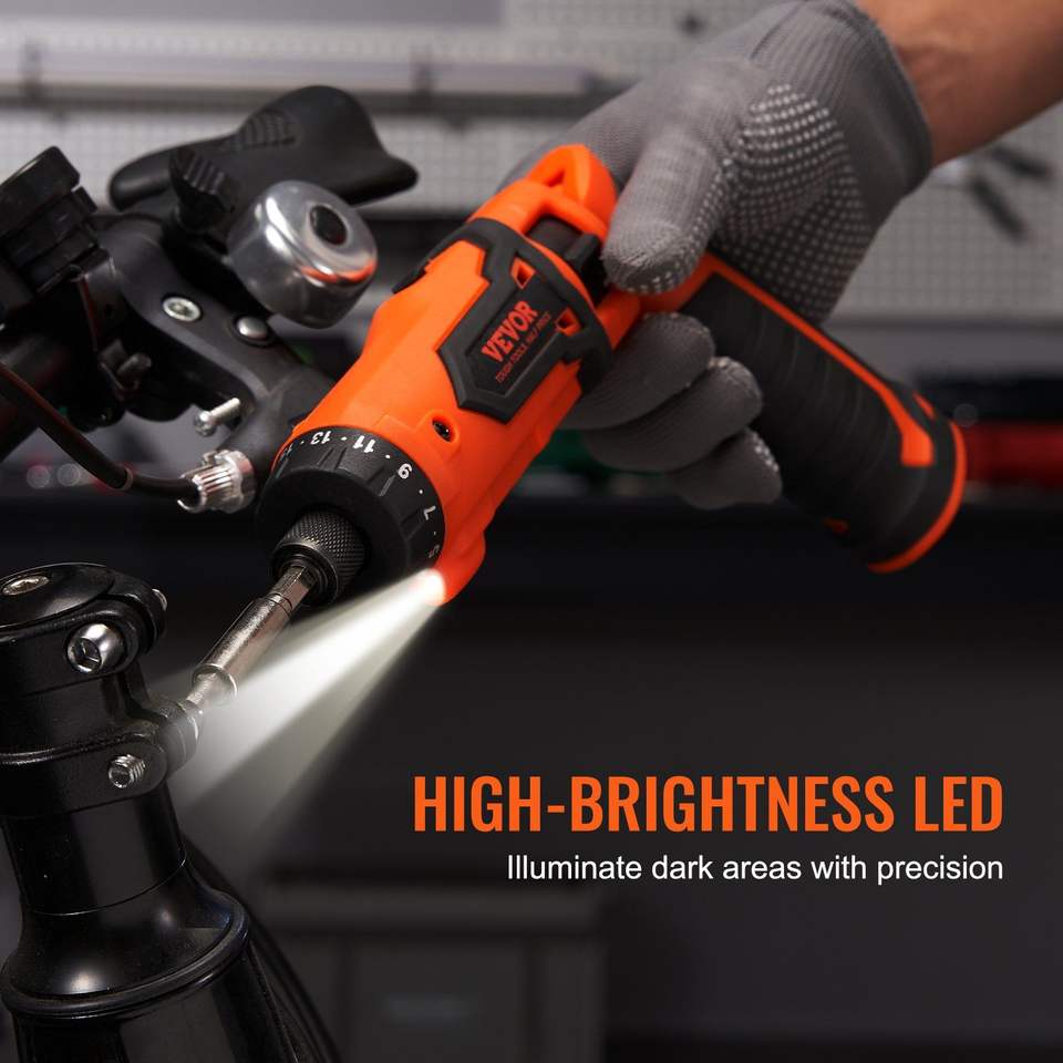 DB เซตไขควงไฟฟ้าไร้สาย7Nm 4V แบบชาร์จไฟได้พร้อมไฟ LED และชุดอุปกรณ์เสริมสายชาร์จ11ชุด