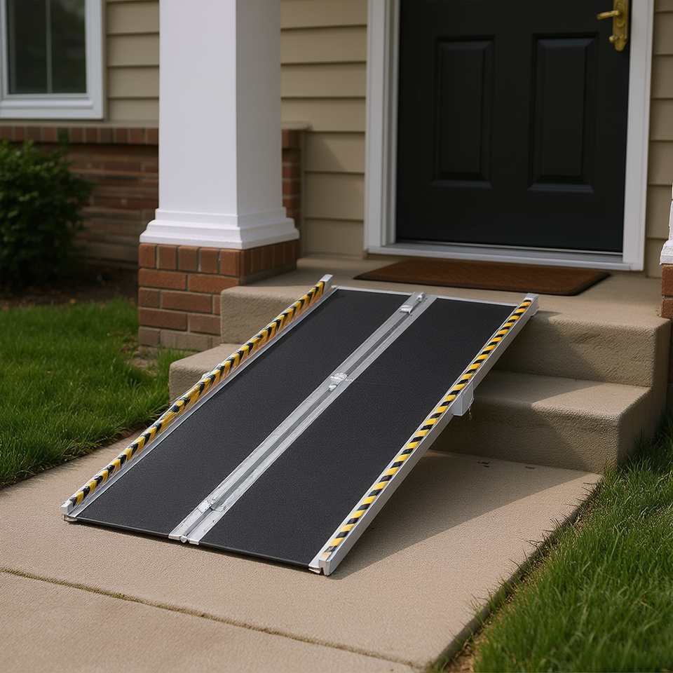 ทางลาดรถเข็นอลูมิเนียม DB Wholesale ขนาด 8 ฟุต รับน้ำหนักได้ 800 ปอนด์ ป้องกันการลื่น พับได้ สำหรับรถสกู๊ตเตอร์