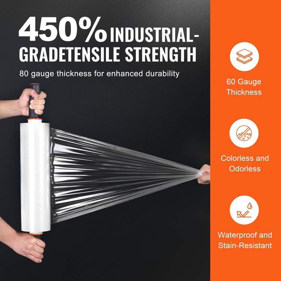 ม้วนแบบยืดได้2แพ็คกว้าง500มม. ความแข็งแรงของอุตสาหกรรมเครื่องวัดขนาด80 "x 1200" ทนทานชัดเจน