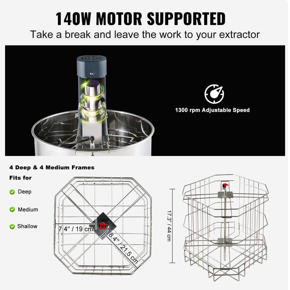 เครื่องสกัดน้ำผึ้งไฟฟ้าทำจากสแตนเลสเครื่องหมุนเหวี่ยงสำหรับ4/8เลี้ยงผึ้งเครื่องหมุนเหวี่ยงสภาพใหม่
