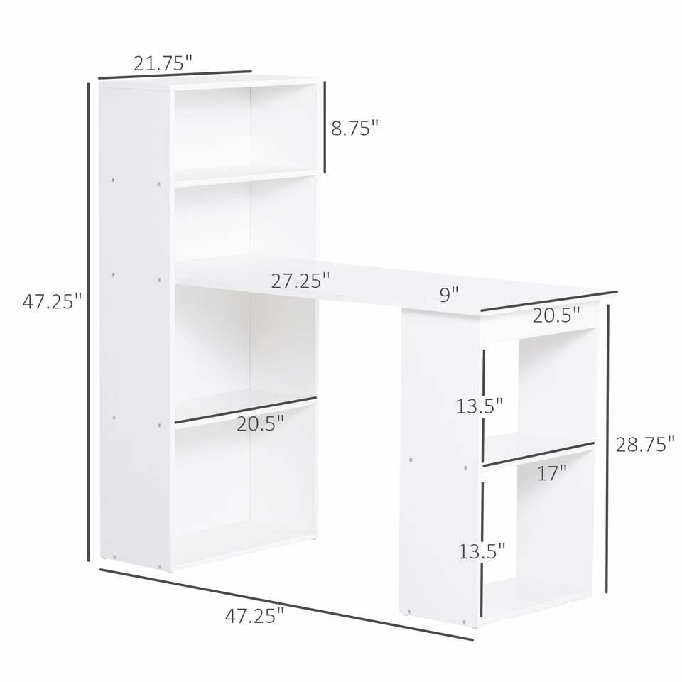 DB สำหรับโต๊ะทำงานที่ทันสมัย, 47 "พร้อมชั้นวางของ6ชั้นลิ้นชักโต๊ะเขียนหนังสือสีขาวพร้อมชั้นวางหนังสือ