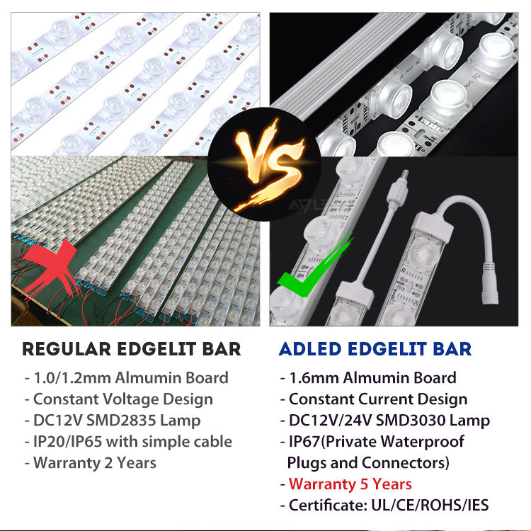 แถบไฟขอบ LED อลูมิเนียม IP67 DC 12V 28.8W สำหรับป้ายโฆษณากล่องไฟ