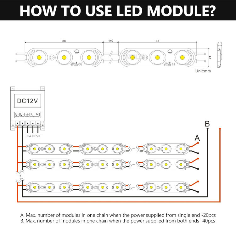 โมดูล LED สีขาว 12V กันน้ำ IP67 2.5W สำหรับป้ายตัวอักษรและกล่องไฟ