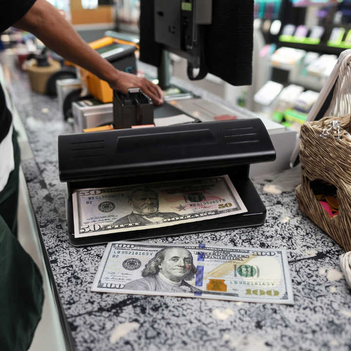 เครื่องตรวจจับธนบัตรขนาดเล็กที่เรียกว่าเครื่องตรวจจับธนบัตรเครื่องฉายภาพรังสี UV เร็วแบบ DC-318จากพลาสติก