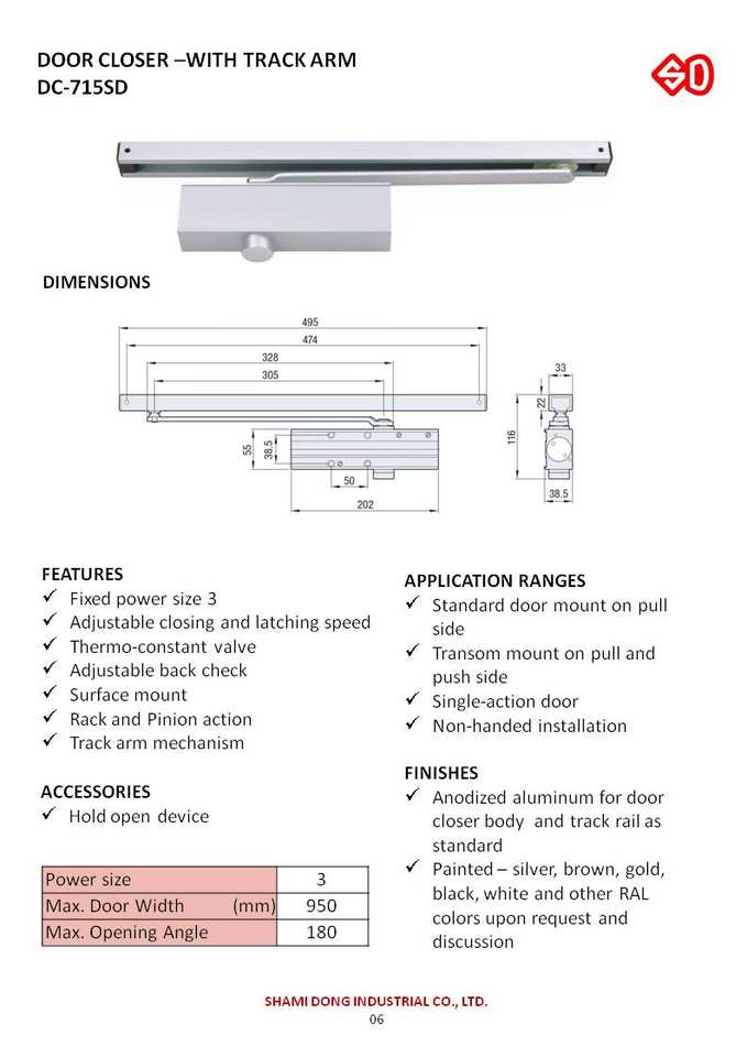 DC-715SD ประตูใกล้ชิดกับแขนติดตาม