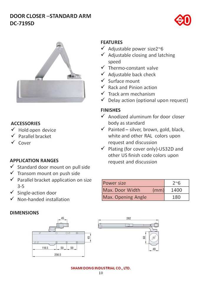 Product Name:DC-719SD DOOR CLOSER STANDARD ARMN
