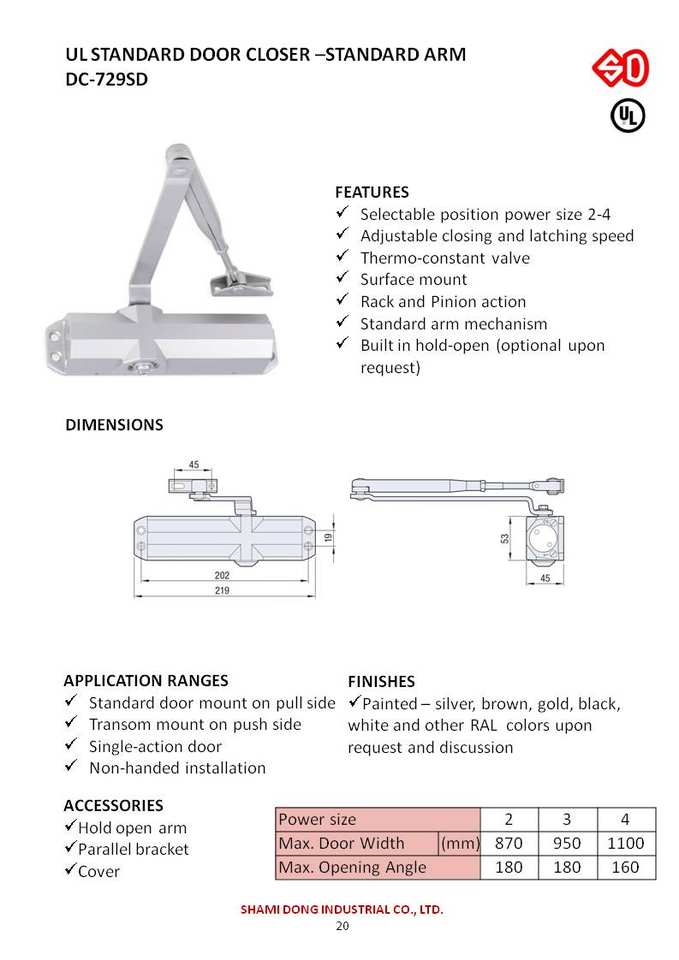 DC-729SD STANDARD DOOR CLOSER STANDARD ARM