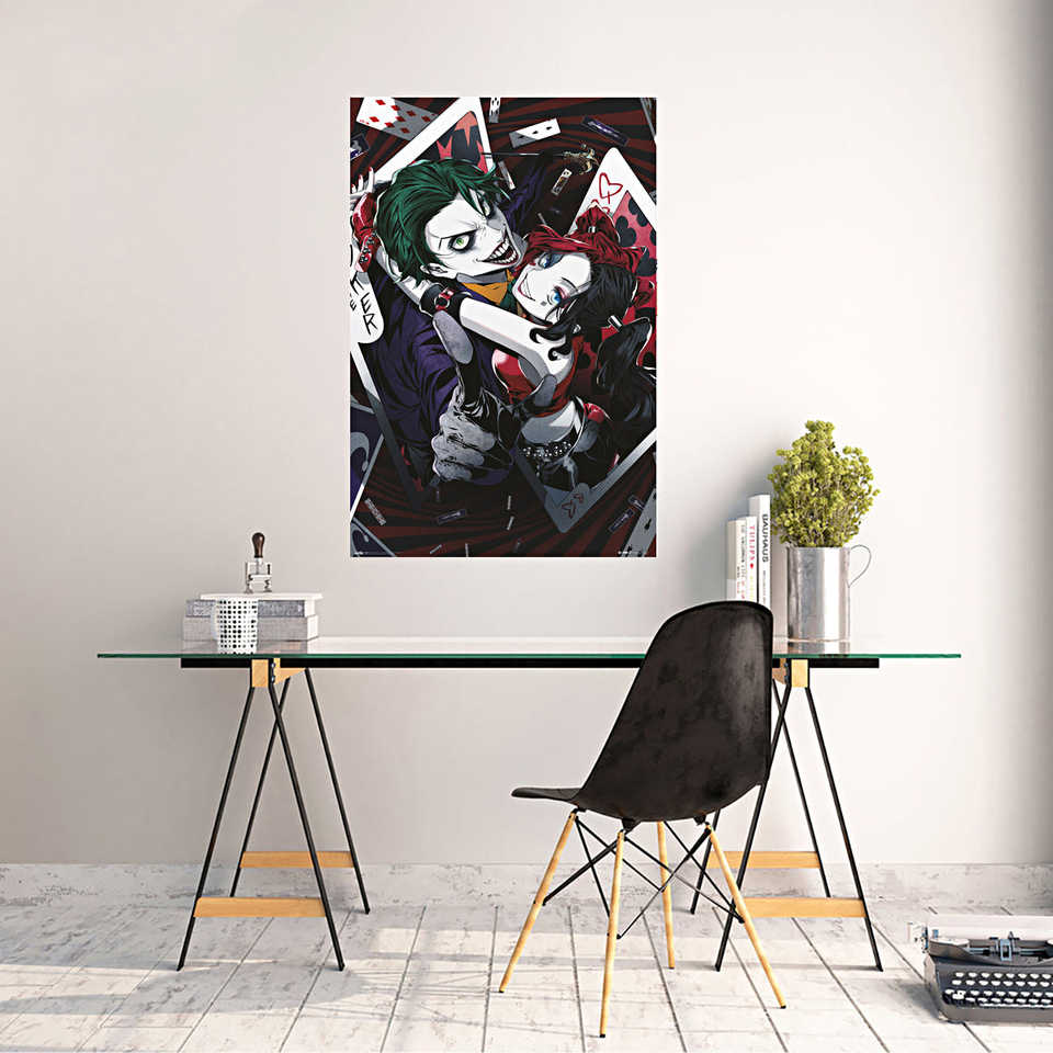 โปสเตอร์อนิเมะการ์ตูนดีซี โจ๊กเกอร์และฮาร์ลีย์ ควินน์