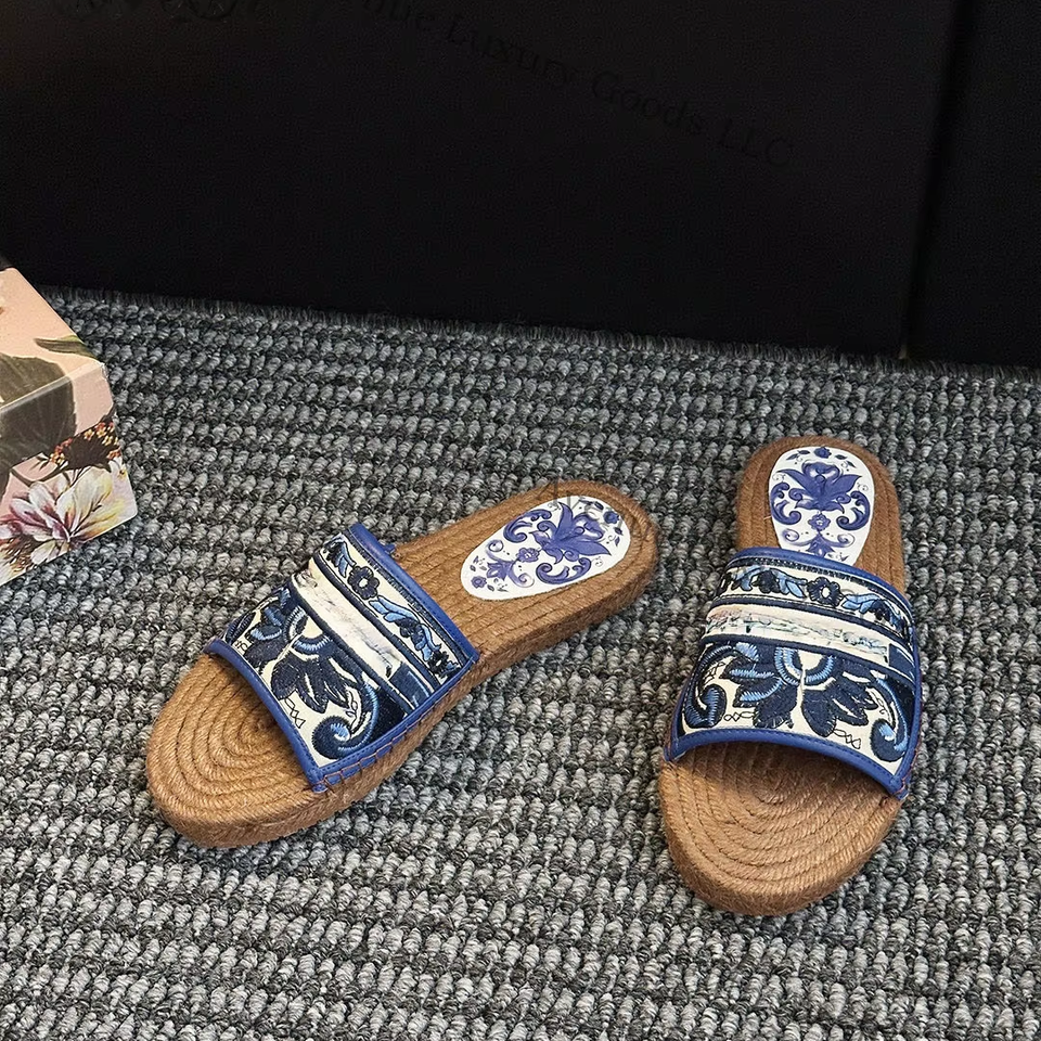 รองเท้าแตะแบบสวมผู้หญิง ดีไซน์ใหม่รับซัมเมอร์ ผลิตจากวัสดุรักษ์โลก พื้นรองเท้าหนังแท้ ผ้าส่วนบนยืดหยุ่น หรูหรา ประณีต