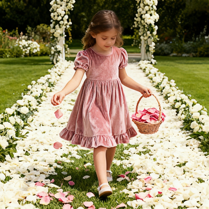 หมายเลขรุ่น:#25151 Sweet Pink Velvet Girls Short Sleeve Dress