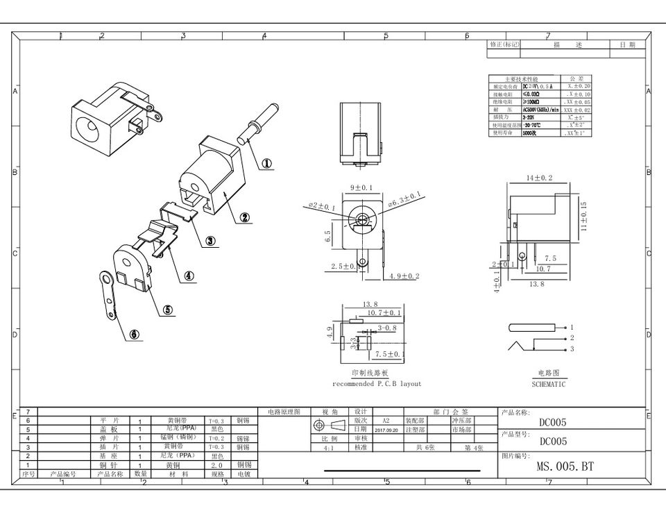 เต้ารับไฟฟ้า DC005, เต้ารับ DC ตัวเมียแบบกันไฟลุกแนวนอนทั้งหมดทำจากทองแดง, เต้ารับ DC สำหรับชาร์จขนาด 5.5x2.1/2.5 พิน จากโรงงาน