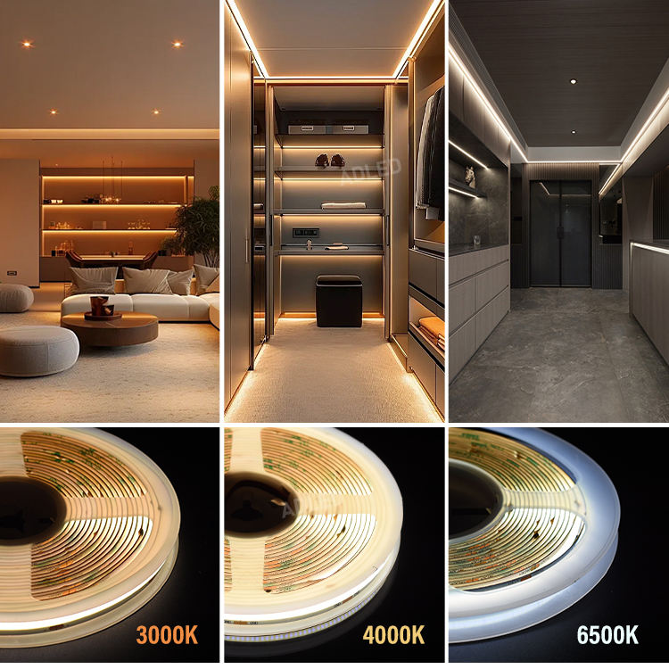 แถบไฟ LED หรี่แสงได้ DC12V 24V ความหนาแน่นสูง528 led/m ซังมีความยืดหยุ่น10mm ความกว้างมีอยู่ใน3000K 4000K 6500K FOB