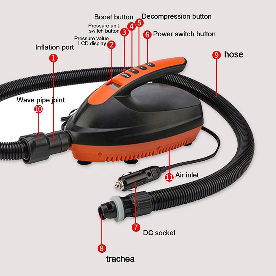 DC12V ไฟฟ้า SUP ปั๊ม16PSI อัตราเงินเฟ้อสำหรับ SUP Board Air ปั๊ม Sup ปั๊มไฟฟ้ารถไฟแช็ก Powered 16 Psi Sup Inflator