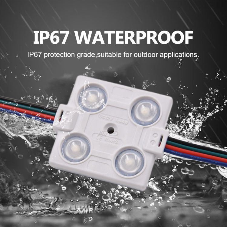 โมดูล LED DC12V IP67 ROHS เลนส์ 160 องศา SMD5050 4 ดวง RGB สำหรับป้ายร้านค้า