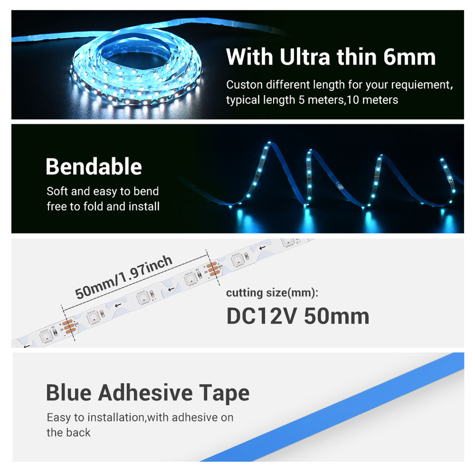 ความยาว:5เมตร/ม้วน (แถบ LED เท่านั้นไม่รวมอุปกรณ์เสริมใดๆ)