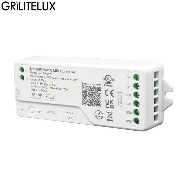 ตัวควบคุมไฟ LED แบบ SPI Tuya รองรับ WiFi และบลูทูธ DC5V-24V สำหรับไฟ RGBW WS2811 Pixel Light Strip พร้อมการควบคุมผ่านแอปสมาร์ทโฟน