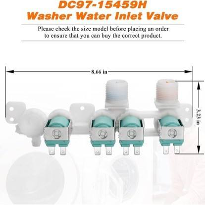 DC97-15459H วาล์วน้ำเข้าเครื่องซักผ้า 8.66 นิ้ว x 3.23 นิ้ว ไฟฟ้า 110 โวลต์ ใช้ได้กับเครื่องซักผ้าซัมซุง