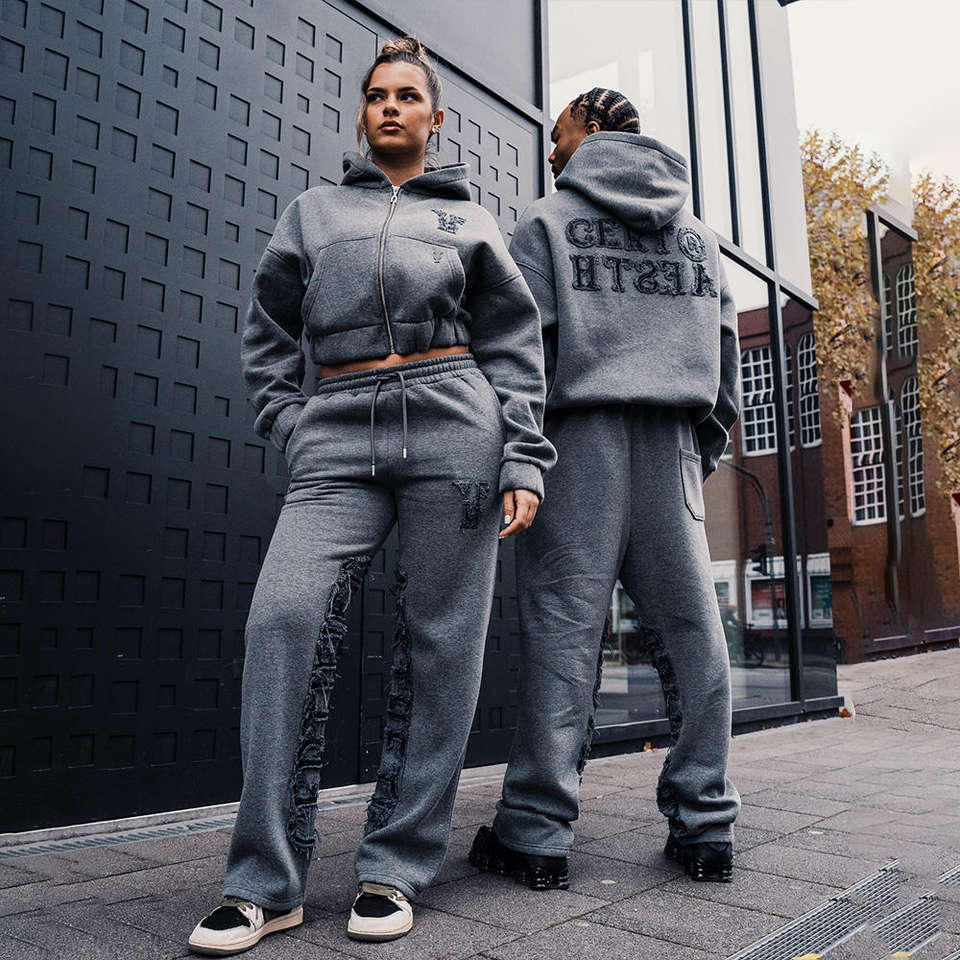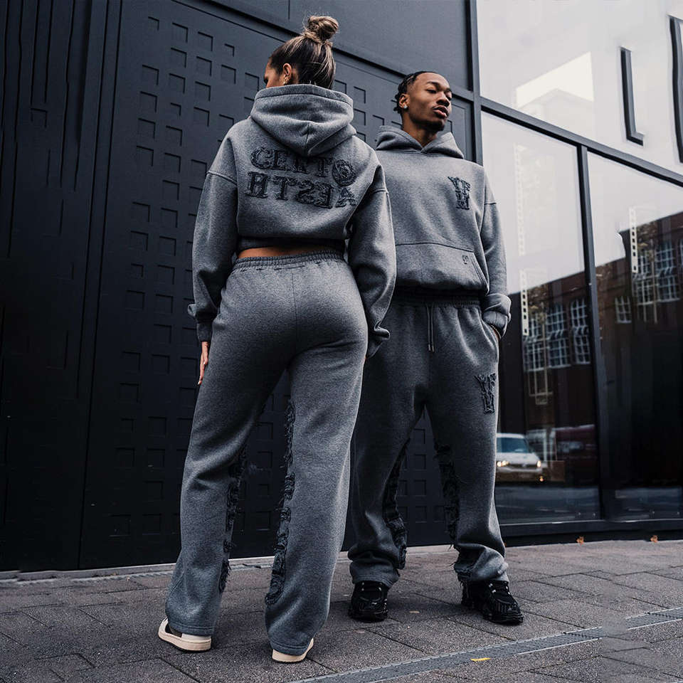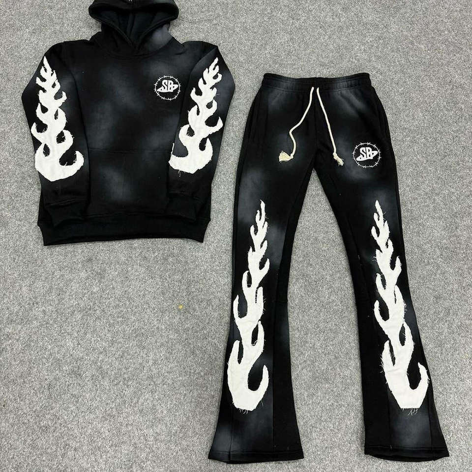 ชุดวอร์มผู้ชายผ้าเฟรนช์เทอร์รี่ 380 กรัม แบบมีฮู้ด สีพื้น ล้างสีแบบแอซิดวอช ทรงขาบาน สั่งทำได้