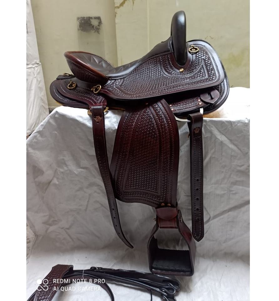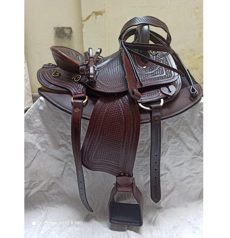 DD หนังมีหลายขนาด10 ''-18'' ชุดอานม้าอังกฤษสีน้ำตาลทนทานแบบตะวันตกอานม้าสำหรับแข่งม้าเพื่อความสุขในการขี่