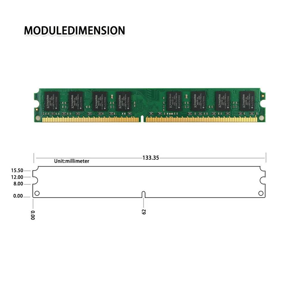 แรมตั้งโต๊ะ,แรม2GB DDR2 667 Mhz 800 PC2-6400 5300 MHz หน่วยความจำเดสก์ท็อป1600Mhz DIMM 1.8V/1.5V NO ECC 2GB 4GB 8GB Ddr3 PC3 1333U 1.35V DDR3 Ram