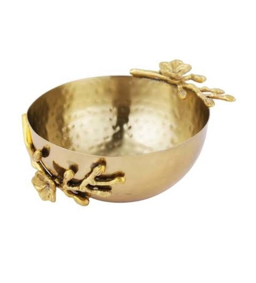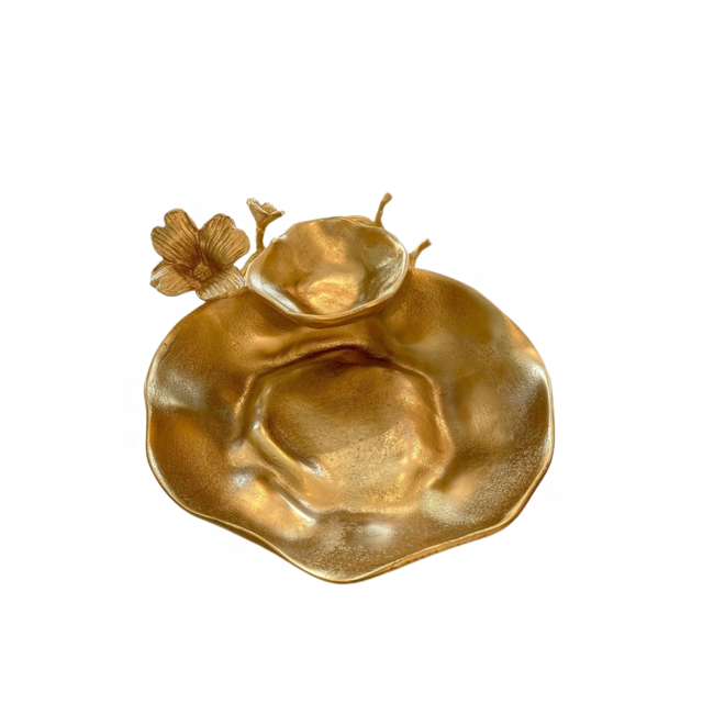 ชามเสิร์ฟพร้อมผลไม้อบแห้งทำจากโลหะสีทองสำหรับตกแต่งดีไซน์ใบไม้ใหม่กำหนดได้เอง