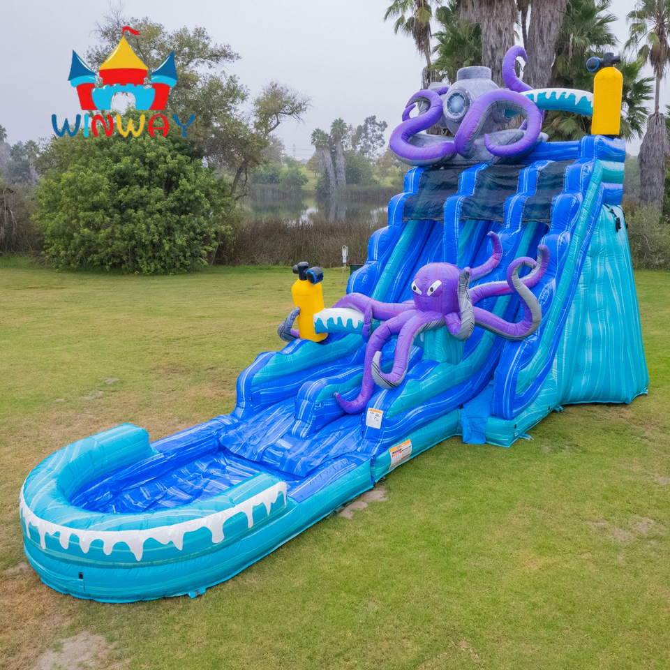สไลเดอร์น้ำเป่าลม DEEP SEA Winway ขนาด 20 ฟุต 24 ฟุต แบบสองเลน พร้อมสระน้ำลึก รับน้ำหนักได้ 500 กก. เหมาะสำหรับงานวันเกิดและปาร์ตี้