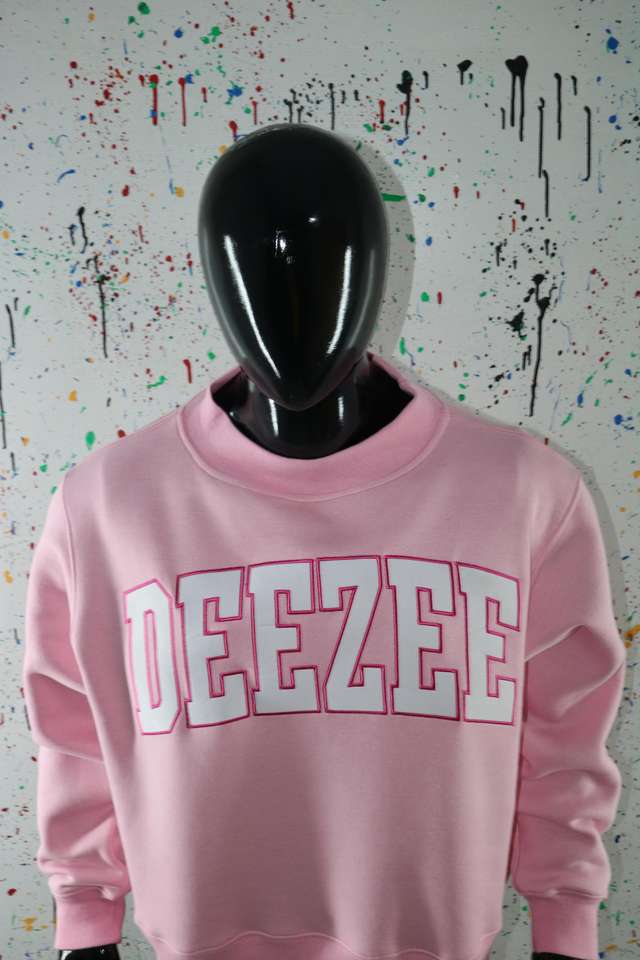 DEEZEE PINK เสื้อสเวตเชิ้ตคอเต่าสีขาว เสื้อสเวตเชิ้ตคอกว้างปักลาย URBAN PRODUCTIONS