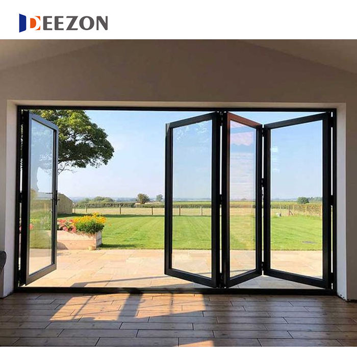Deezon ประตูอลูมิเนียมสองพับเก็บได้กันเสียงสำหรับห้างสรรพสินค้ากลางแจ้งโรงแรมวิลล่าผลิตในประเทศจีน