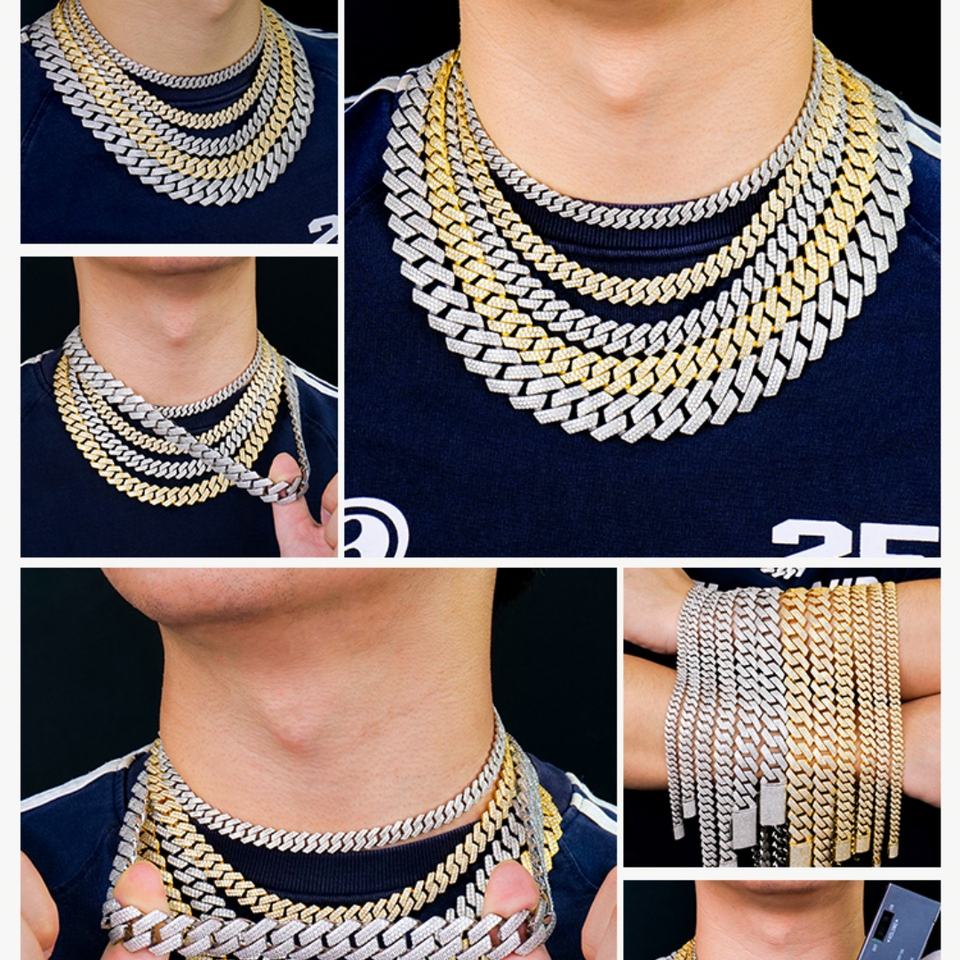 สร้อยคิวบันโมอิสซาไนต์สี DEF เงินแท้ 925 ชุบทอง สร้อยคอผู้ชาย ใส่ได้กับทุกชุด