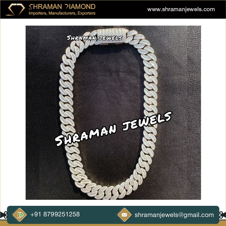 DEF สี VVS 925เงินสเตอร์ลิง18มม. สร้อยคอประดับเพชรโมอิสซาไนต์สไตล์คิวบาสร้อยดีไซน์ทันสมัยคุณภาพระดับพรีเมียม