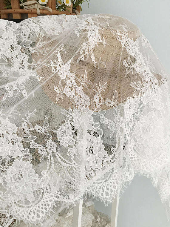 ผ้าลูกไม้ฝรั่งเศสชานทิลลี่ ดีไซน์สวยหรู นุ่ม เรียบง่าย โปร่งแสง ลายเส้นกระดูก ผ้าลูกไม้สองด้าน สำหรับชุดแต่งงาน