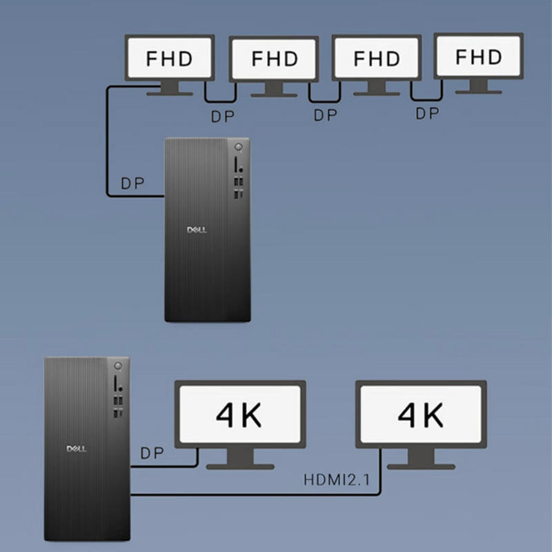 Dell คอมพิวเตอร์ตั้งโต๊ะสำหรับเล่นเกมในบ้านสำนักงาน I5-14400 14เจเนอเรชั่น8G แรม DDR5 512G SSD 180W ธุรกิจ ECT1250ออฟฟิศ