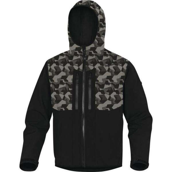 DELTA PLUS-แจ็คเก็ตลายพรางสีดำ, แจ็คเก็ตลายพรางโพลีเอสเตอร์/อีลาสเทน HORT2NCPT-M พร้อมลามิเนต3ชั้น