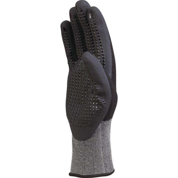 DELTA PLUS-ถุงมือโพลีเอสเตอร์/ สแปนเด็กซ์ถักสีดำพร้อมถุงมือไนไตรล์ปาล์มและจุด (หลายแพ็ค) VE724NO11