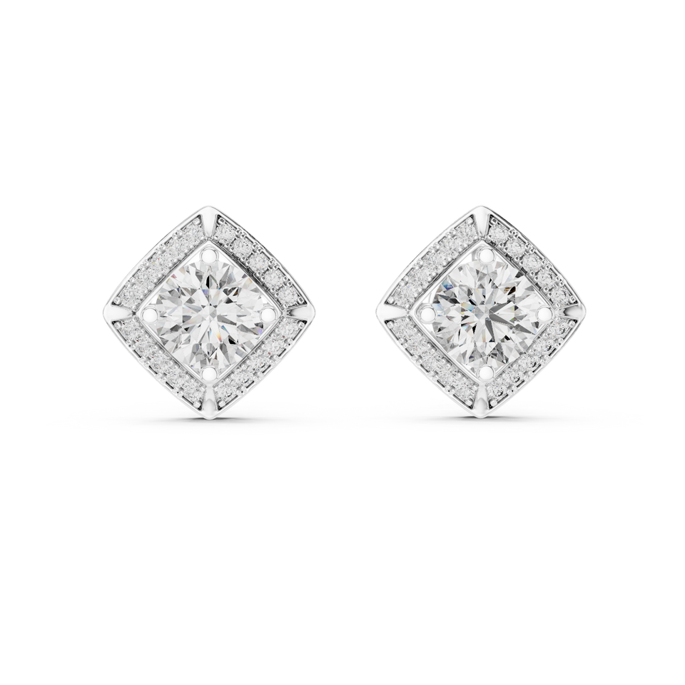 ต่างหูเพชรแล็บโกรว์ทรงบริลเลียนต์ น้ำหนัก 1.26 กะรัต ต่อคู่ ทองคำขาว 18 กะรัต ชุบโรเดียม รับรองโดย IGI ระดับหรูหรา