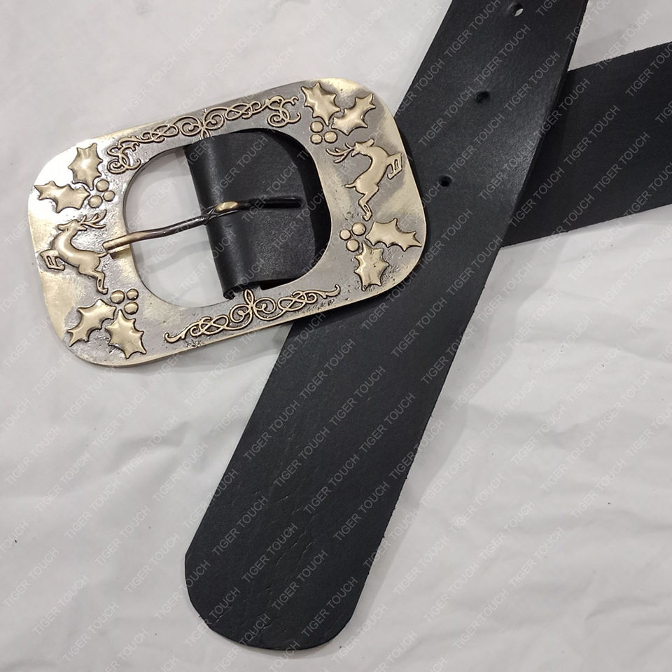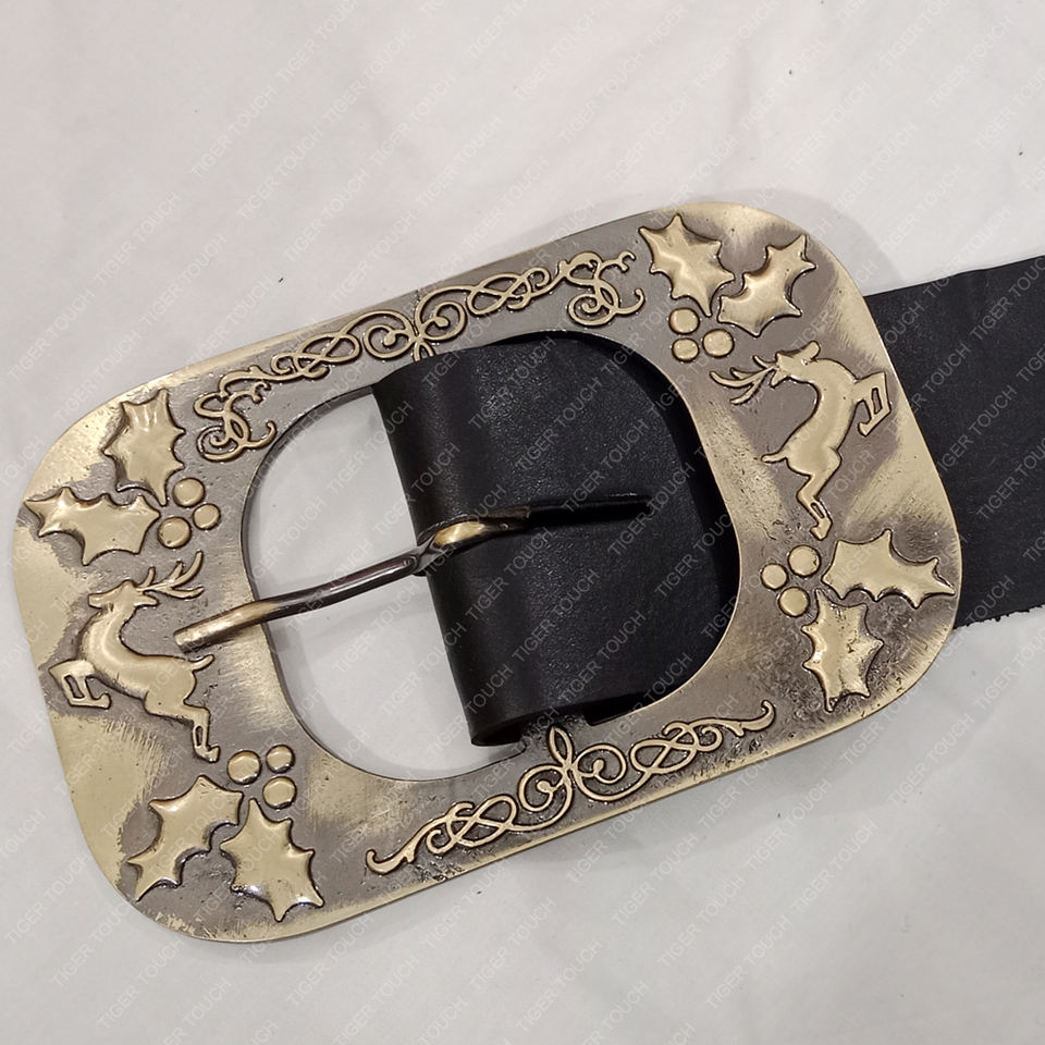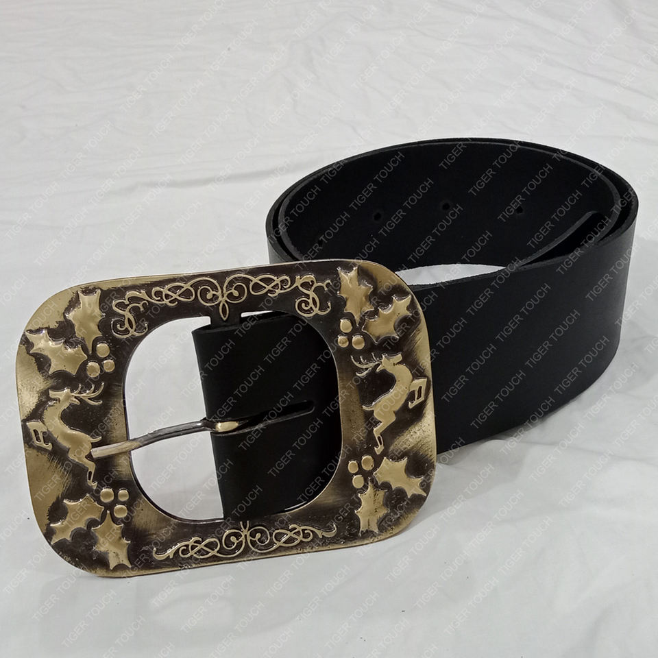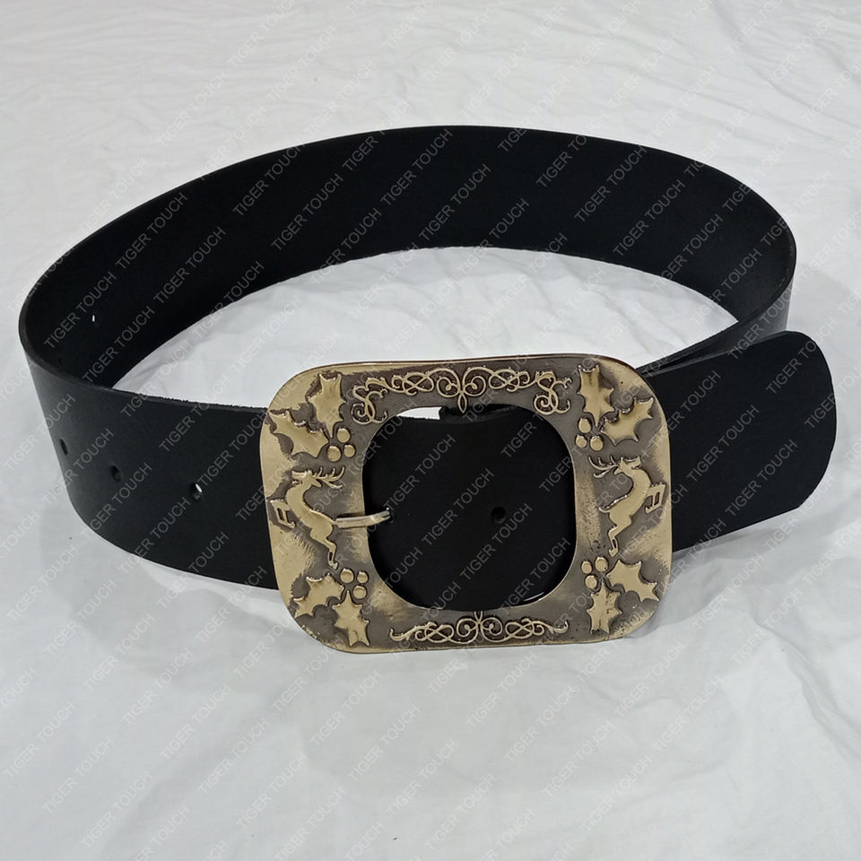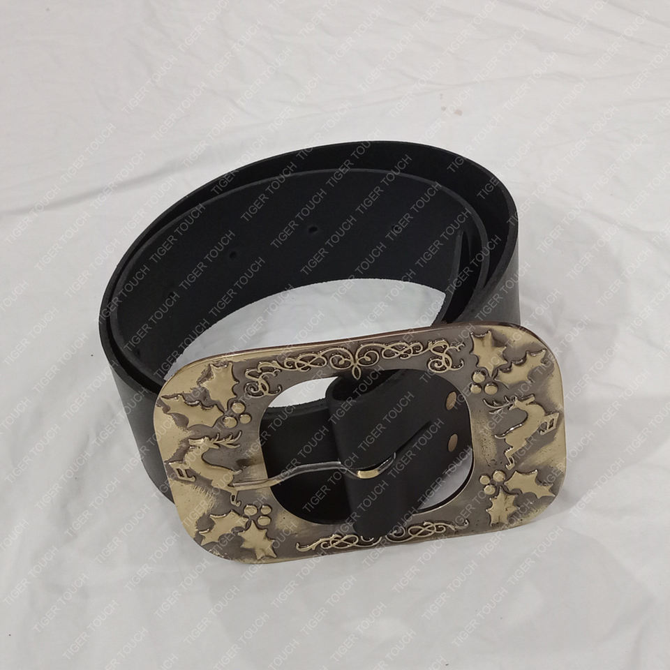 เข็มขัดซานตาคลอสแบบดีลักซ์ รุ่นคริมโบ สำหรับผู้ใหญ่ เข็มขัดซานต้าสีดำทอง หัวเข็มขัดทองเหลืองสไตล์ยุคกลาง รุ่น TT-7585
