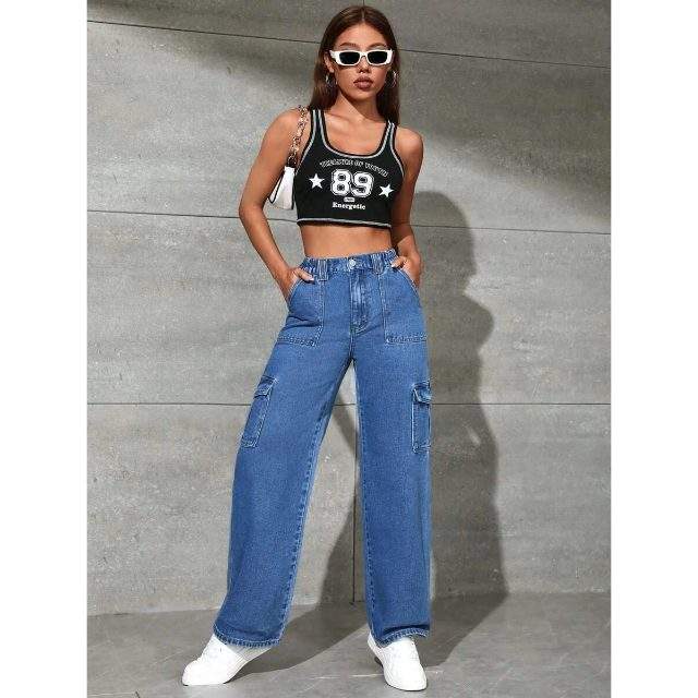กางเกงยีนส์ขาตรงปักลายหรูหราผ้าเดนิมยืดได้เป็นมิตรกับสิ่งแวดล้อมขนาด26-40 oska สากล
