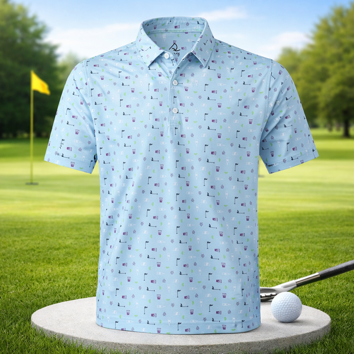 เสื้อโปโลผู้ชายแบบแห้งเร็ว พิมพ์ลายทั้งตัว ระบายความชื้น ผลิตตามสั่ง พร้อมโลโก้แบรนด์ แบบเกาหลี