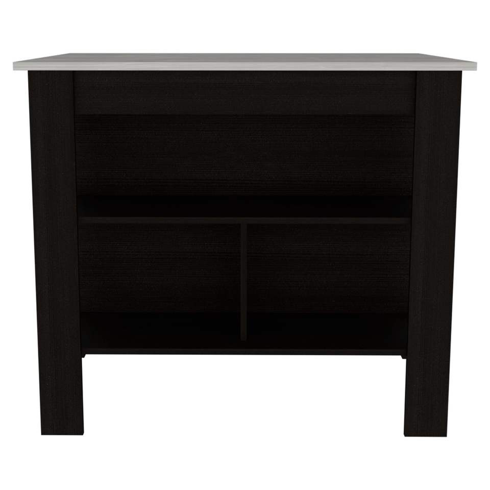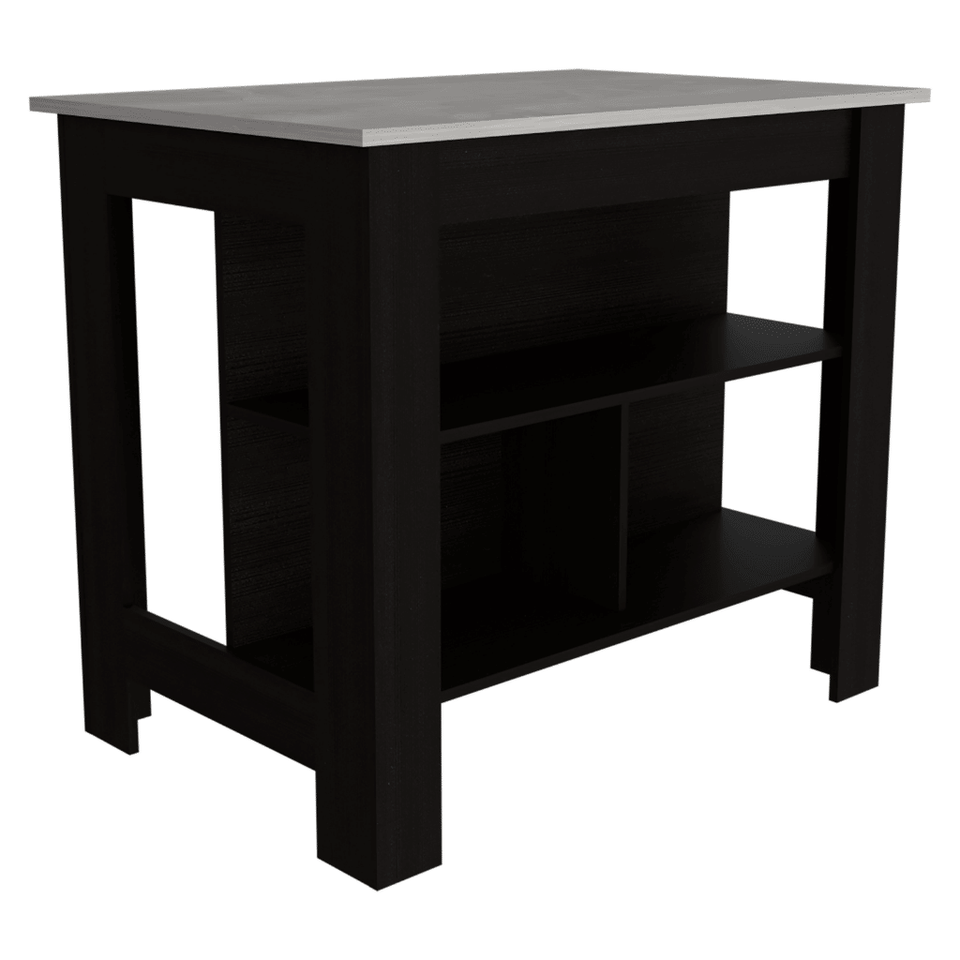 Depot E Shop's Delos KITCHEN Island สี่ขามีสามชั้นวางในหินอ่อนสีดำและอิบิซ่า