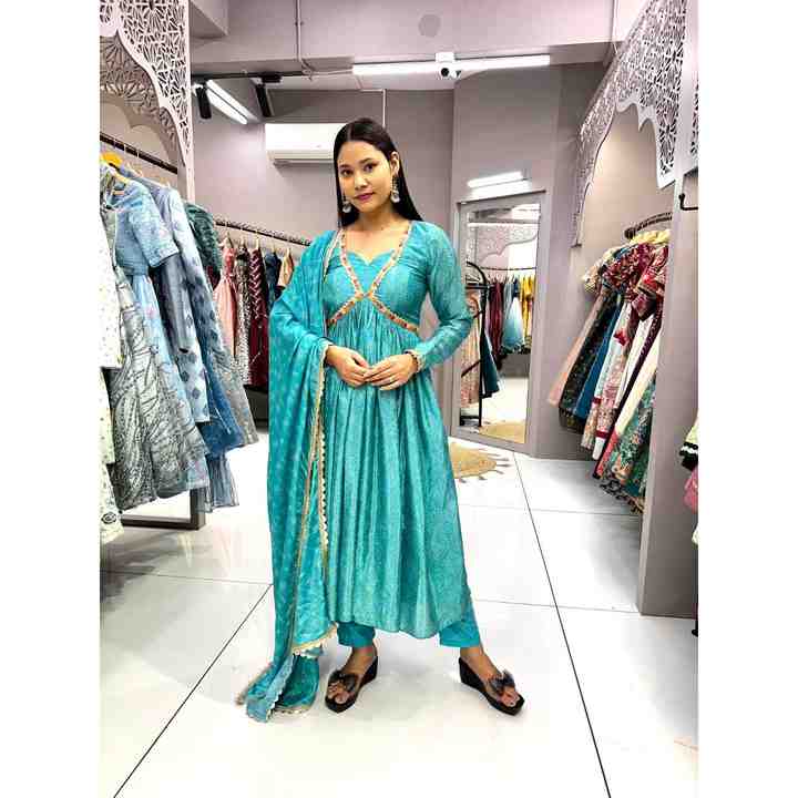ชุดเดรสลูกไม้ปักลาย Chinon สำหรับงานตัดเย็บด้านล่างพร้อมท้องฟ้า dupatta