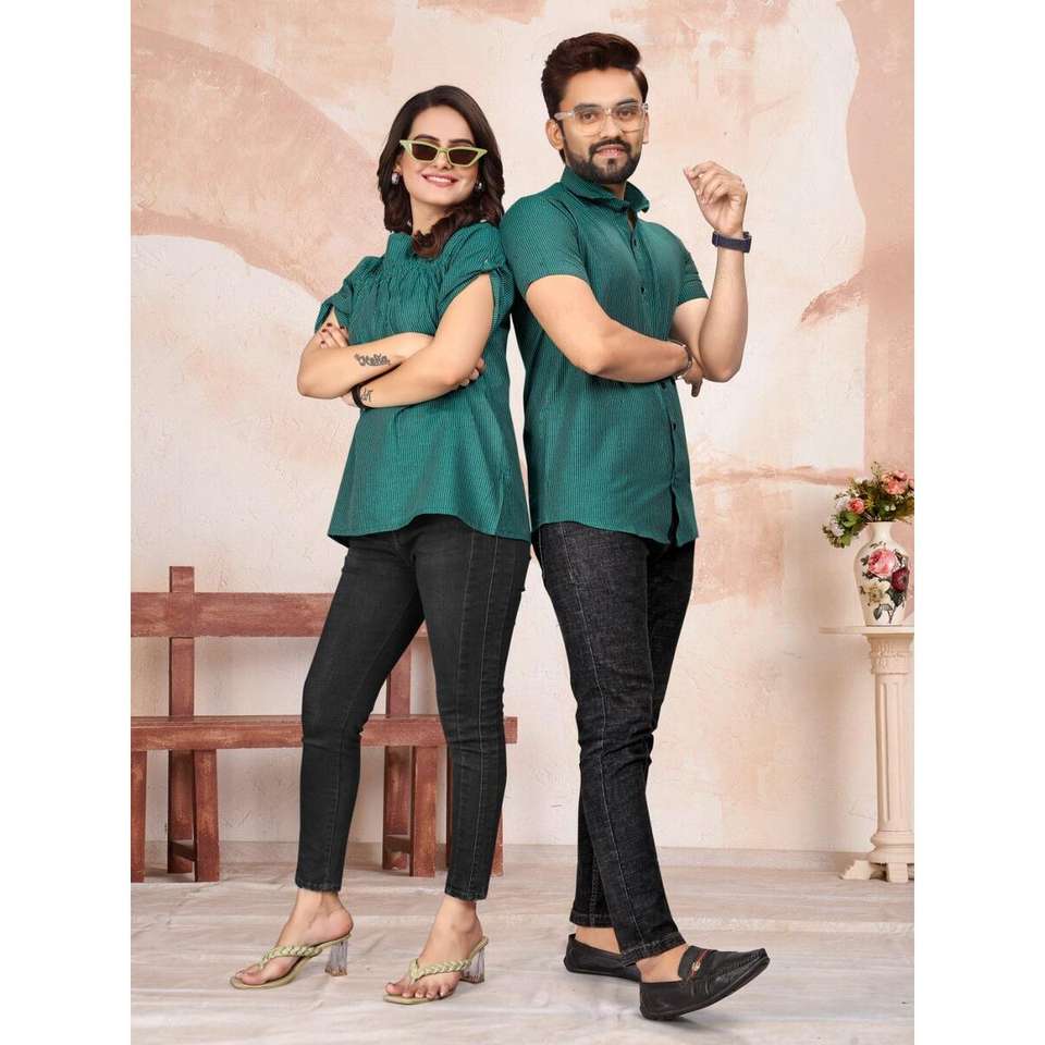 ชุดทำงานผ้าฝ้ายลินินแบบคู่สีเขียว