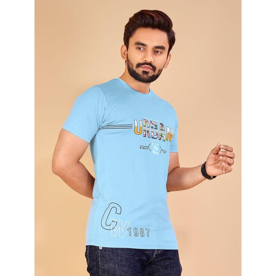 เสื้อยืดผู้ชายแขนสั้นลายพิมพ์ดีไซน์เนอร์เดนิมแบบเรียบ